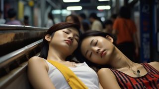 三重県 名張市の路上で寝る女性 ストリートスナップ