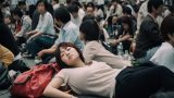 大阪府 四條畷市の路上で寝る女性 ストリートスナップ