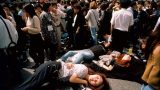 大阪府 池田市の路上で寝る女性 ストリートスナップ