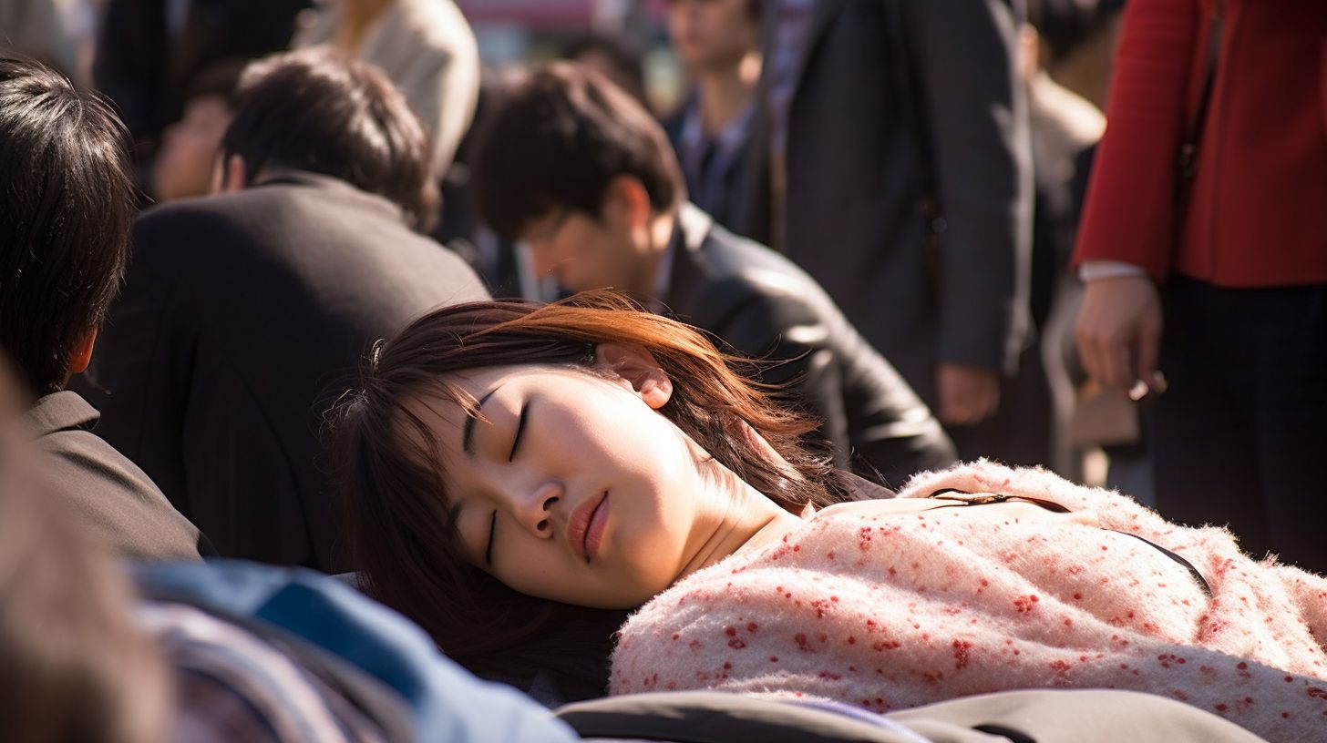 福島県 白河市の路上で寝る女性 ストリートスナップ